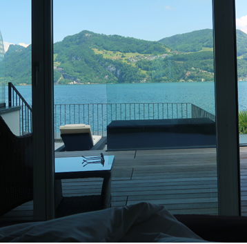 Den ersten Versuch konnten wir auch gar nicht starten…beim zweiten Versuch schafften wir es immerhin bis zu einem Hotel an einem (wunderschönen) See…leider mit Bagger in der Nähe…und so mussten wir in diesen Stunden dann doch mit Rollstuhl und viel Kräfteverschleiß irgendwie „rauß“…zum Abend hin, dann mehr halblebig in der Nacht auf der Terrasse gelegen…die Lichter über dem See geschaut – zutiefst dankbar, zutiefst erschöpft…mein Atem, der See, die Berge hinter dem See – die Lichter der nächsten Stadt…alles irgendwie eins – nur ohne mich…da wo keine Substanz…da auch nur noch wenig „Ich“.