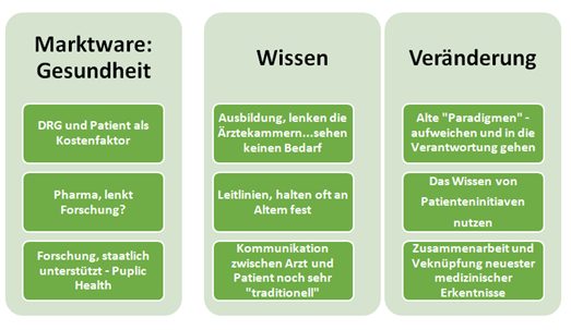 Daher machen und machten sich seit Jahr(zehnten) die Patientenvereine stark, dass dies auch Berücksichtigung findet. Wie auch in der im