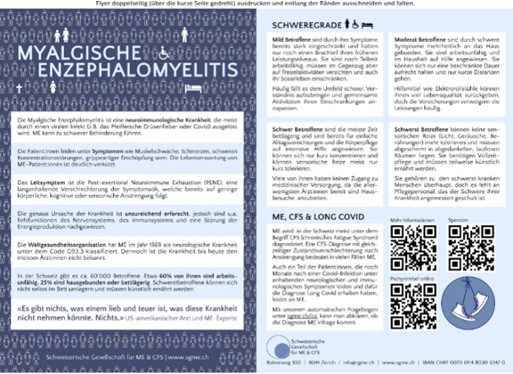 - Auch die Schweizer Gesellschaft ME/CFS hat vielfältige Informations-Materialien: